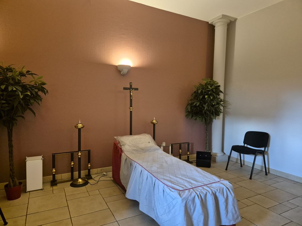 * Hors des heures d'ouverture, vous pouvez contacter le gestionnaire de la chambre funéraire sur la ligne téléphonique : , 24h/24 et 7j/7 y compris les dimanches et jours fériés.