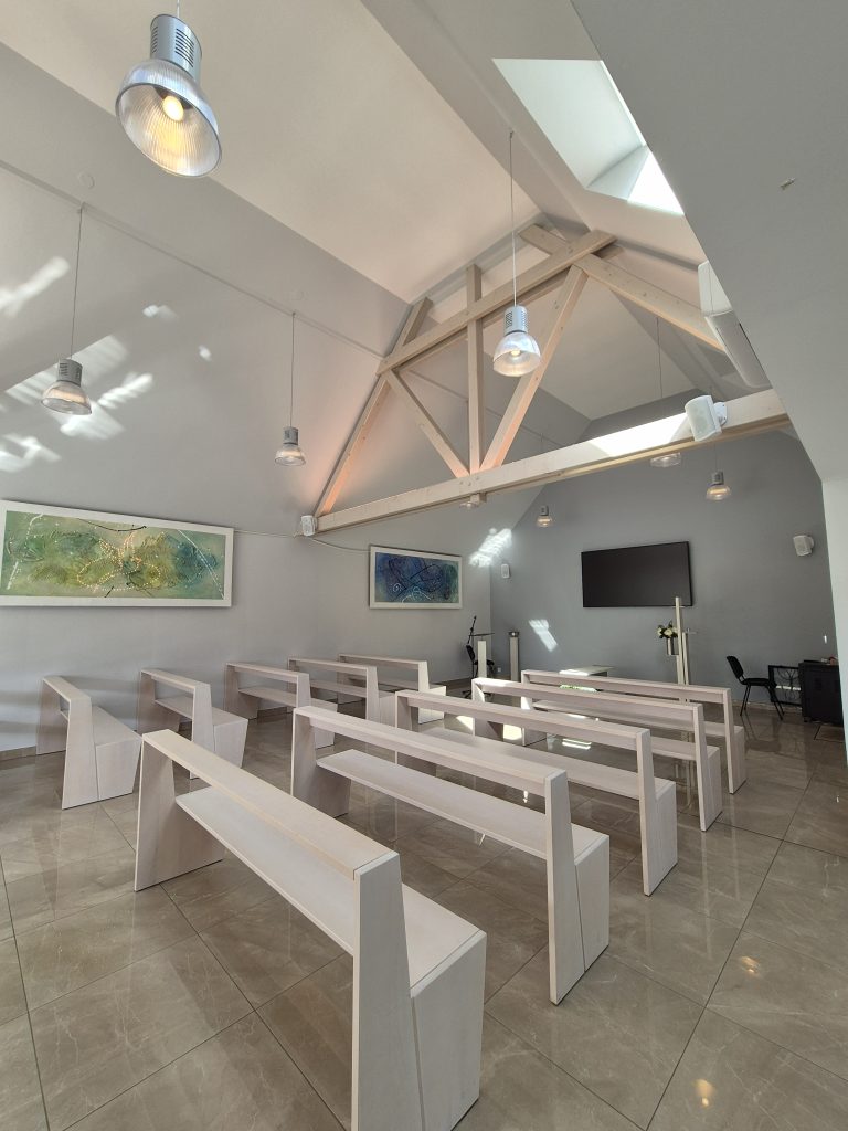 Dans notre chambre funéraire, nous vous proposons une salle de cérémonie pensée pour offrir un cadre intime et chaleureux où vous pourrez rendre hommage à vos proches. Ce lieu, aménagé avec soin, est conçu pour organiser des cérémonies dans une atmosphère paisible et respectueuse, en harmonie avec vos désirs et besoins spécifiques.